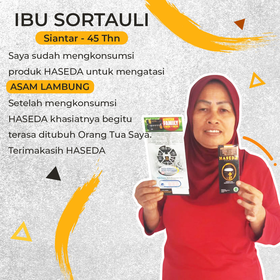 Singkut - Saya membeli produk HASEDA untuk Orang Tua saya yang menderita PENYAKIT PARU-PARU, setelah mengkonsumsi HASEDA khasiatnya begitu terasa ditubuh Orang Tua Saya. Terimakasih HASEDA.